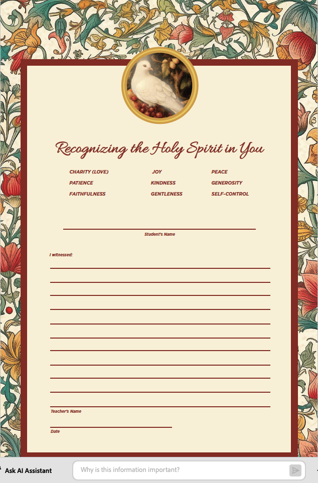 4. Send the Holy Spirit Card home with the student to share the moment with their family.