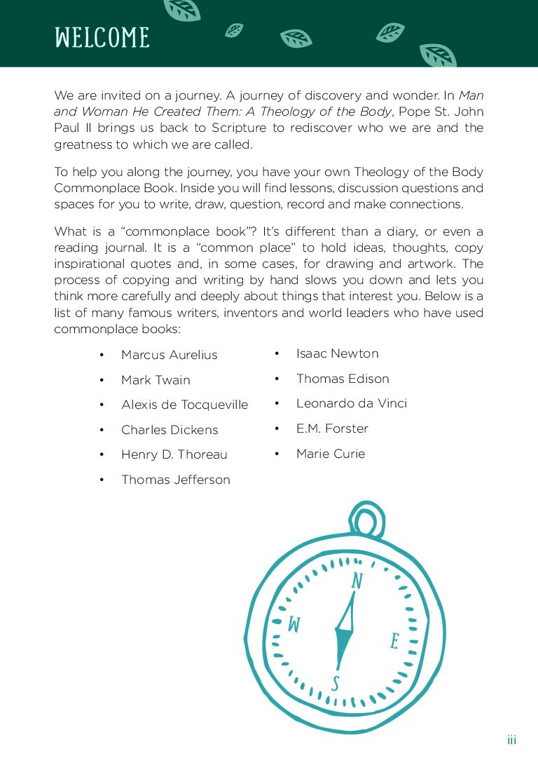 The NEW USCCB Conformity Edition of the Level III – Jr. High (formerly Grade 8) Common Place Book conveys TOB lessons and allows room for written reflection. One needed per student. New 2nd edition as of July 2025.