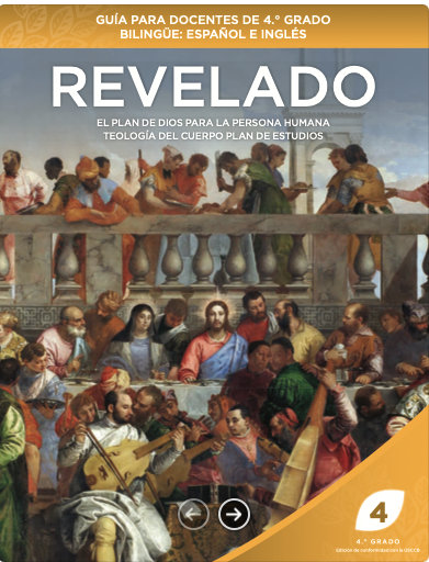 NEW USCCB Conformity List Bilingual (SPN/ENG) Edition of our REVEALED Grade 4 Theology of the Body Curriculum. Literature and scripture-based for fourth graders to discover Theology of the Body and Christian Family Life truths. Non-consumable curriculum kit includes 2 items: Peppe the Lamplighter (ENG) and our comprehensive Fourth Grade Teacher’s Guide, which contains an Original Unity Scripture Study and Salvation History Timeline for exploring readings from your classroom or family Bible, and consumable Fourth Grade Bilingual Student Activity Book.